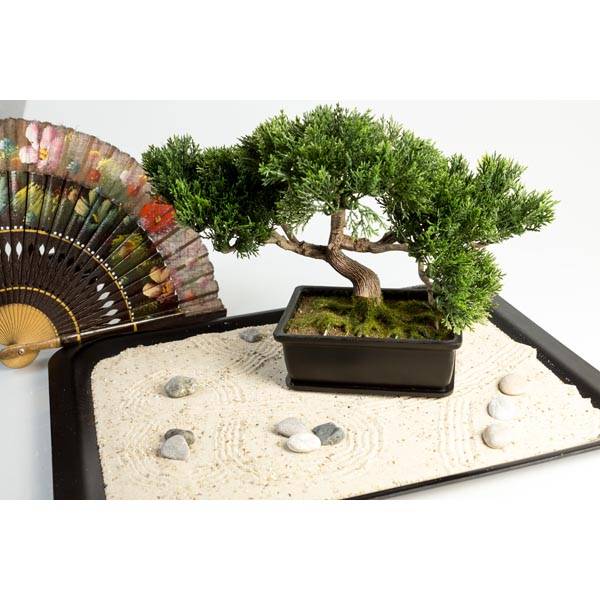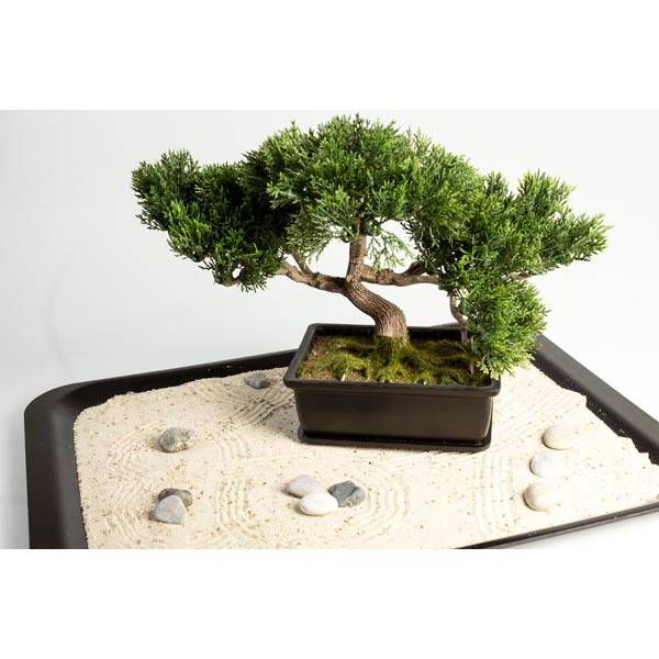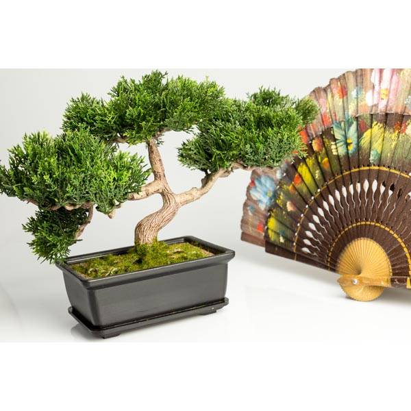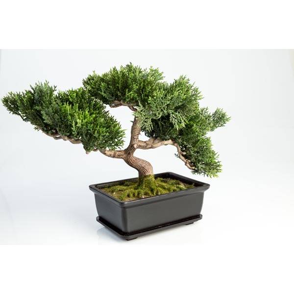 Umělý strom bonsai cedr ALESSA, s kořeny, v květinové míse, 23cm