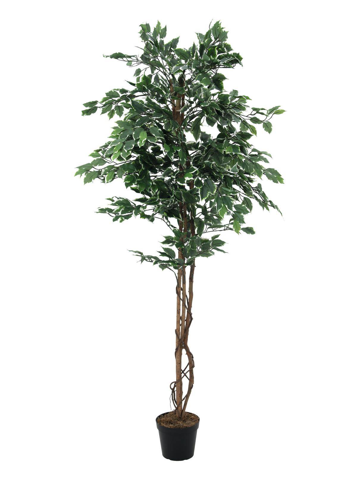 Umělý strom fíkovník drobnolistý JACOPO, přírodní kmeny, zeleno-bíla, 180cm