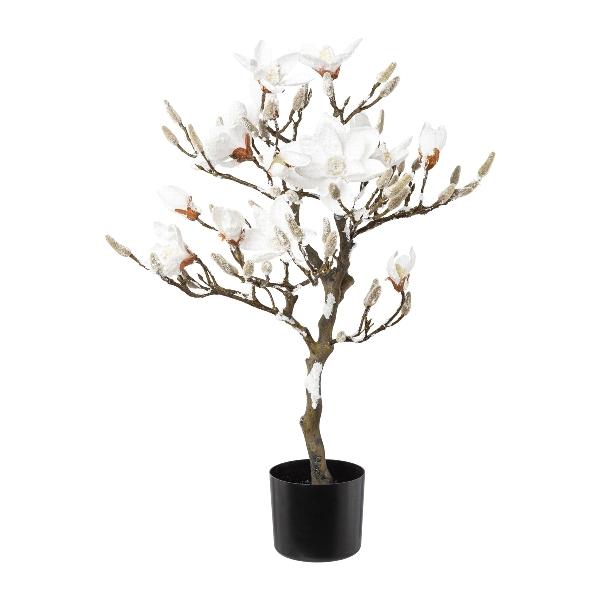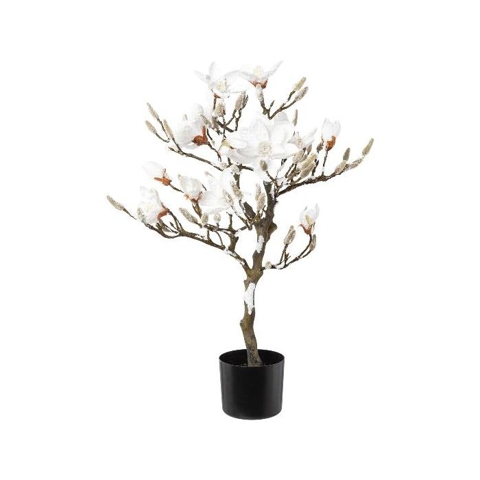 Umělý strom magnólie DOLS, umělý kmen, s květy, zasněžený, 85cm