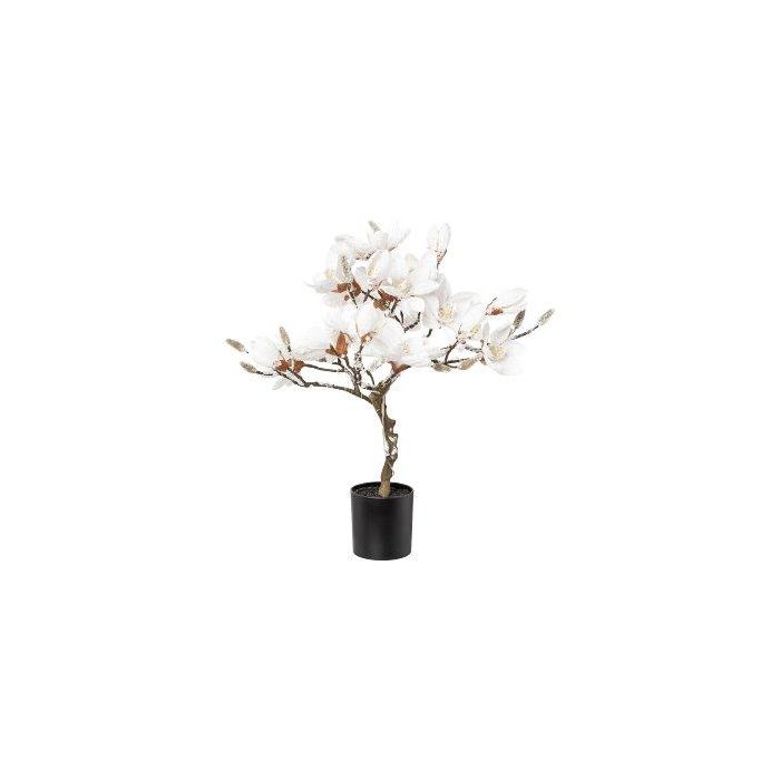 Umělý strom magnólie DOLS, umělý kmen, s květy, zasněžený, LED, 60cm