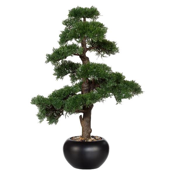 Umělý stromek bonsaj cedr FALKE s kořeny, keramický květináč, 70cm