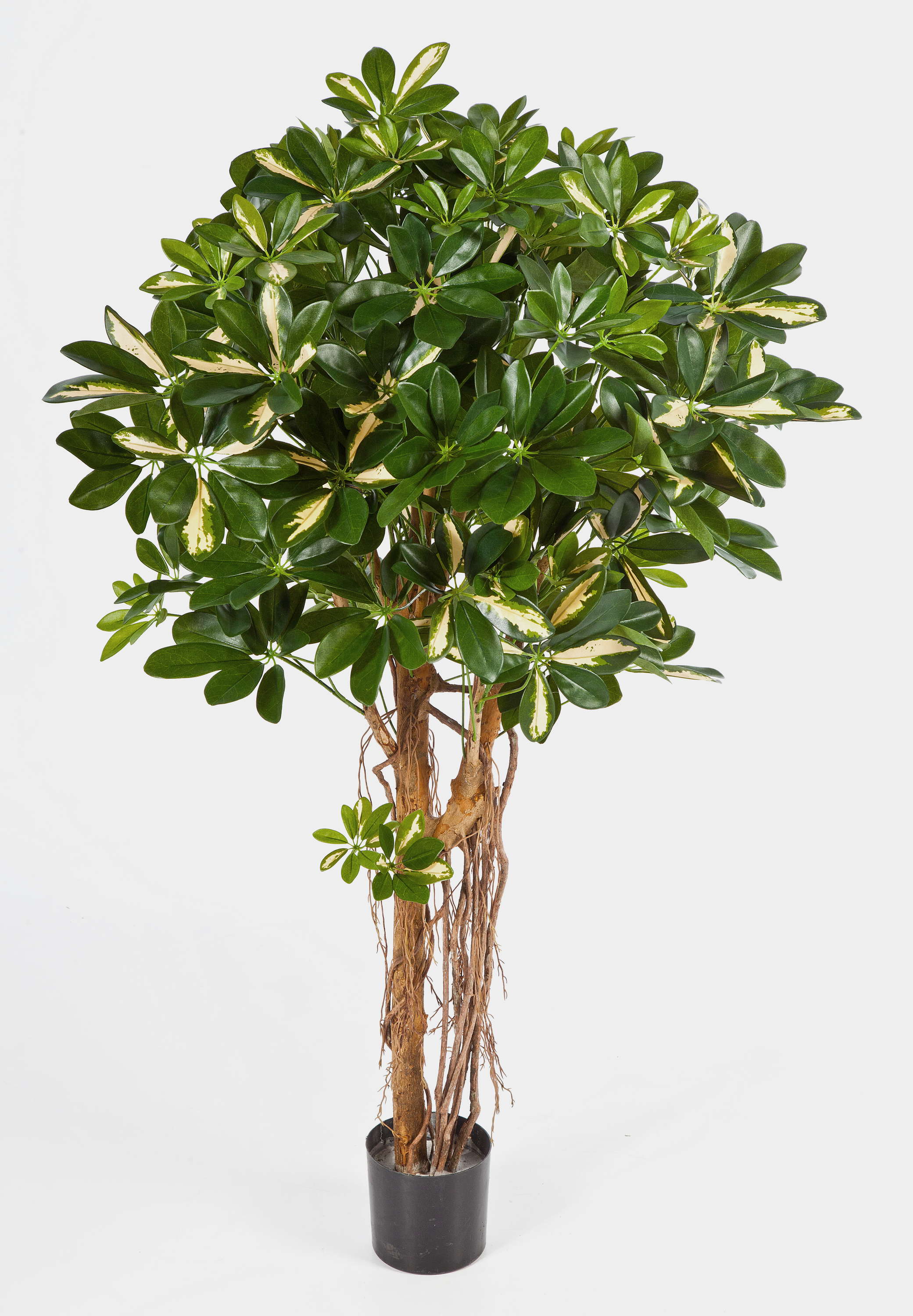 Umělý stromek šeflera SIENNA, skutečné kmeny, zeleno-bíla, 110cm