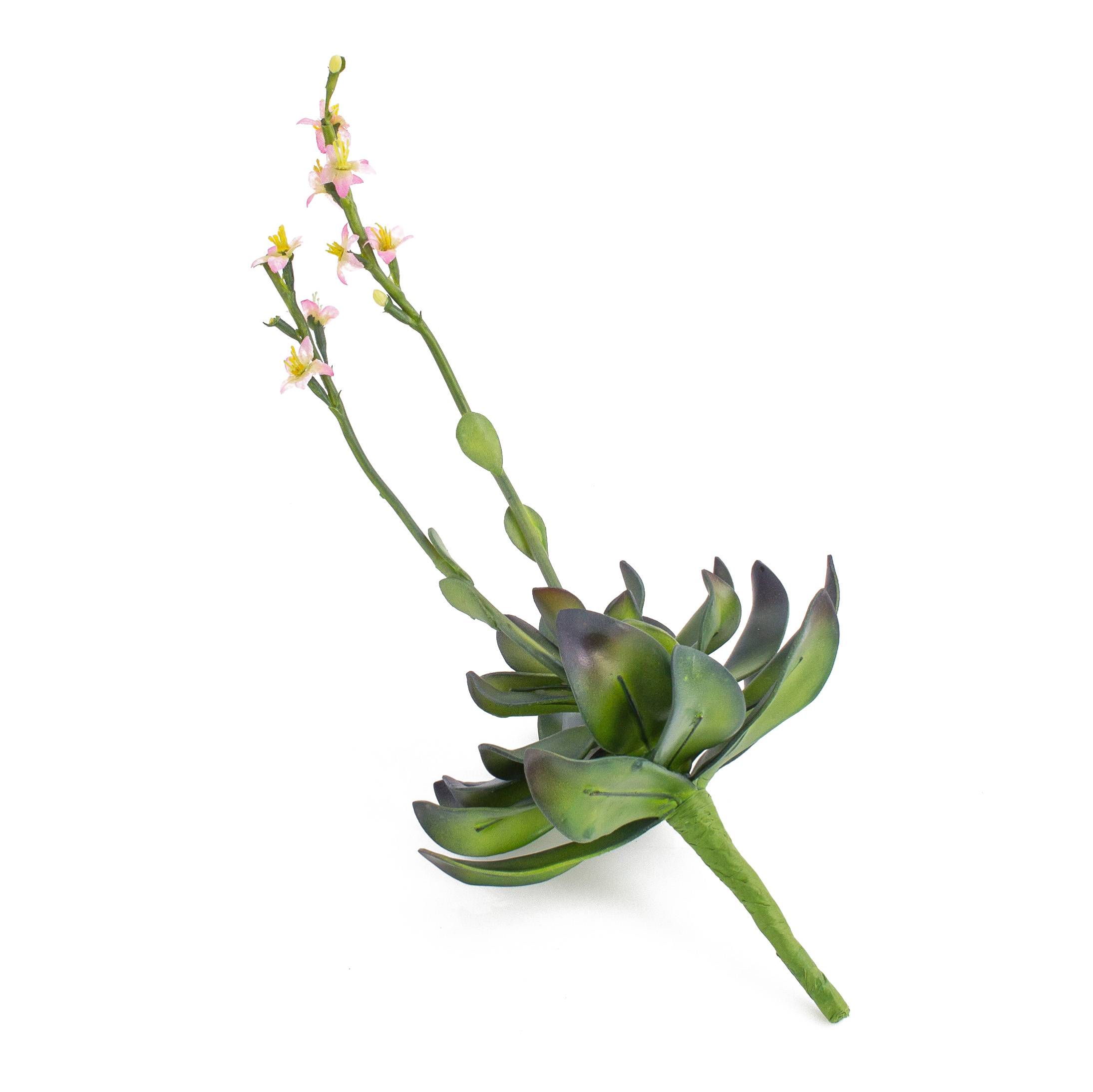 Umělý sukulent aeonium CHARLIZE s květy, se zápichem, růžová, 30cm