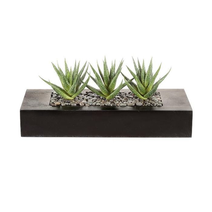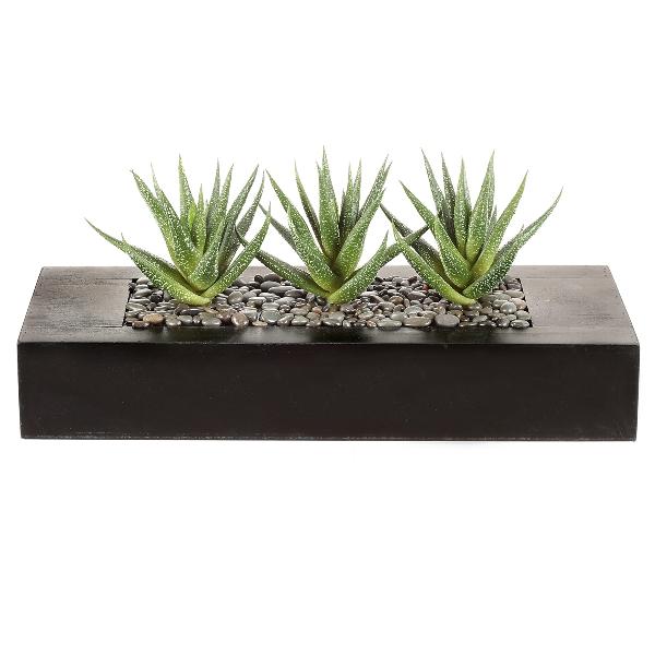 Umělý sukulent Aloe variegata FRONZ v dřevěné krabičce, zelenobílý, 36x15,5x16cm