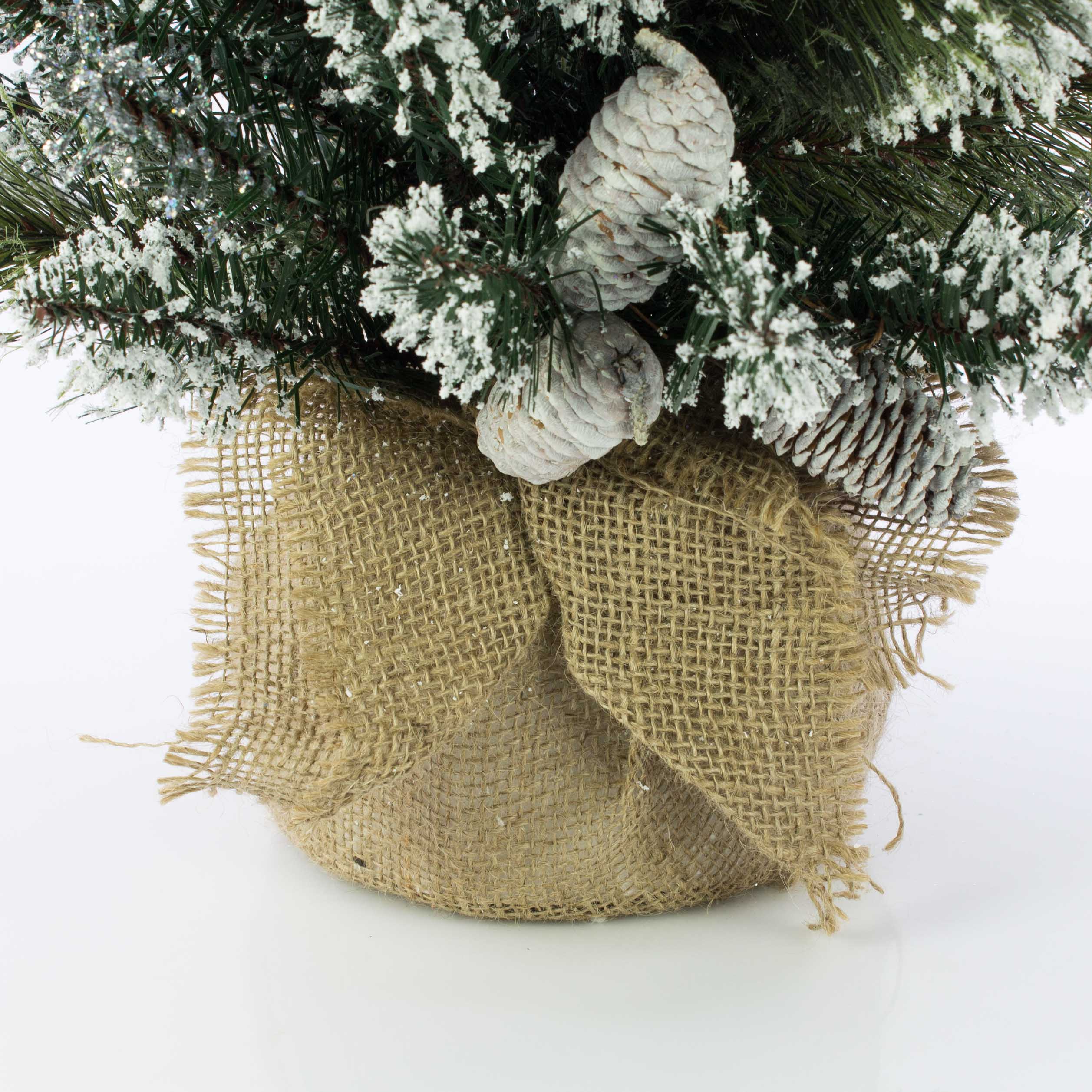 Umělý vánoční stromek RIGA, se šiškami, jutový pytel, bílá, 60cm, Ø40cm
