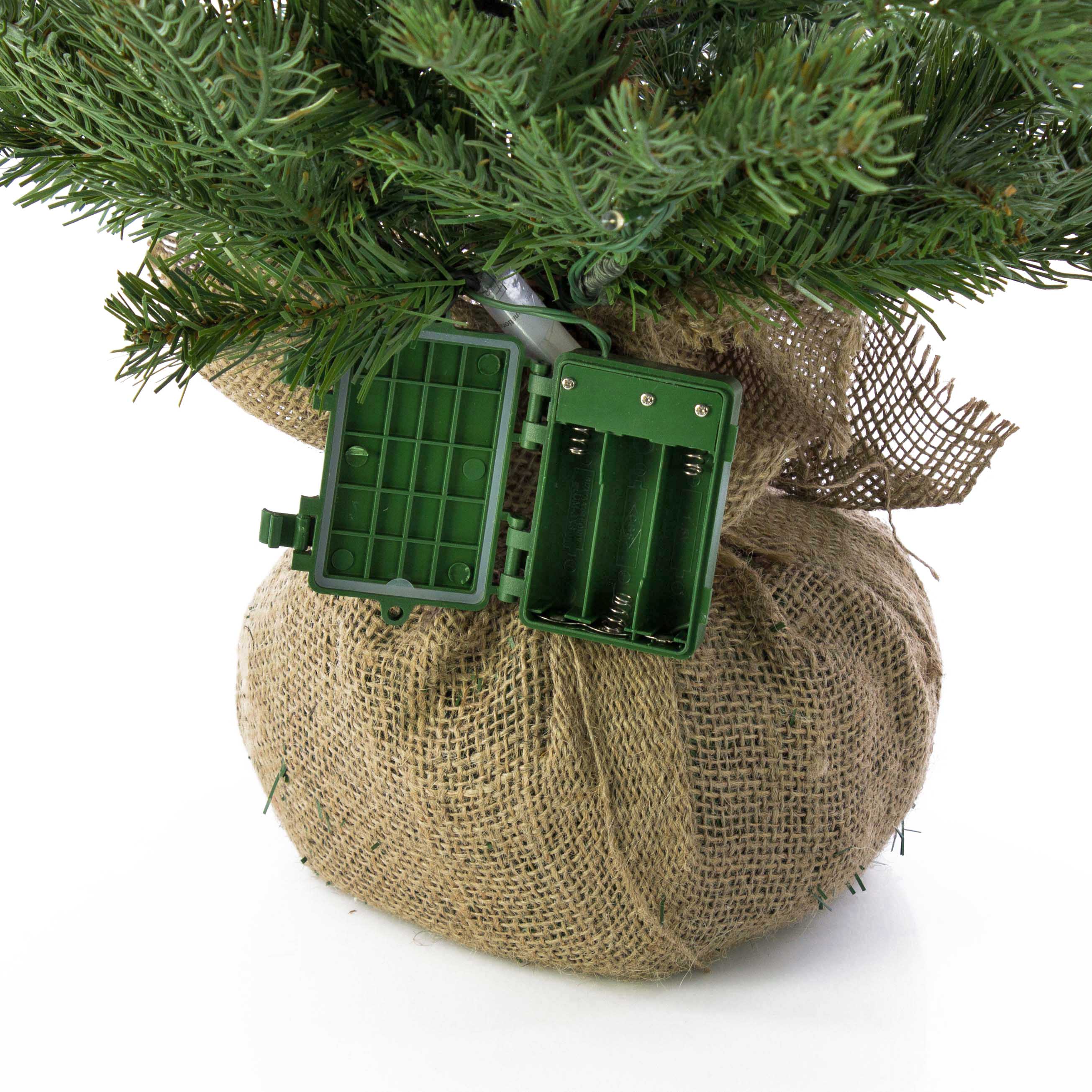 Umělý vánoční stromek WELLINGTON, jutový pytel, LED diody, 90cm, Ø65cm