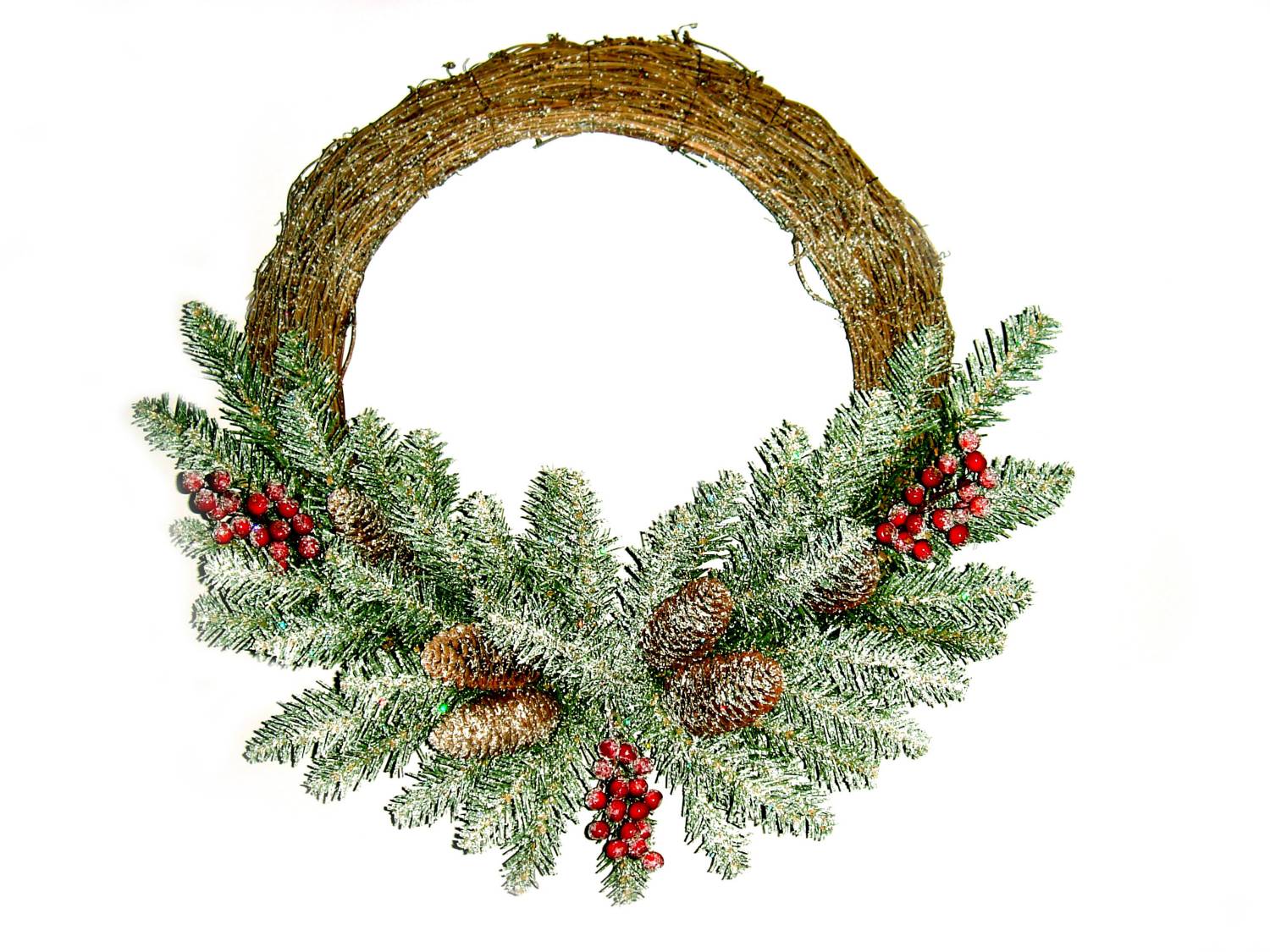 Umělý vánoční věnec RAVENNA, zelený, zasněžený, ovoce, Ø40cm