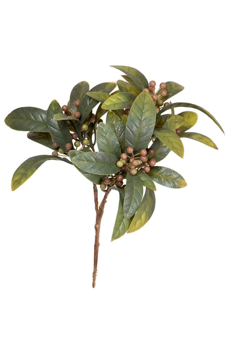 Umělý vavřínový keř KAMINA s bobulemi, tyčový, zelenohnědý-20cm