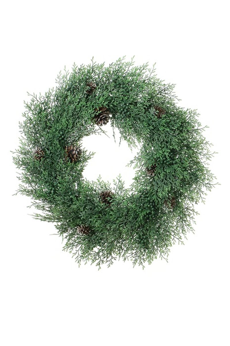Umělý věnec cypřišový RALUKA se šiškami, zelený, Ø60cm