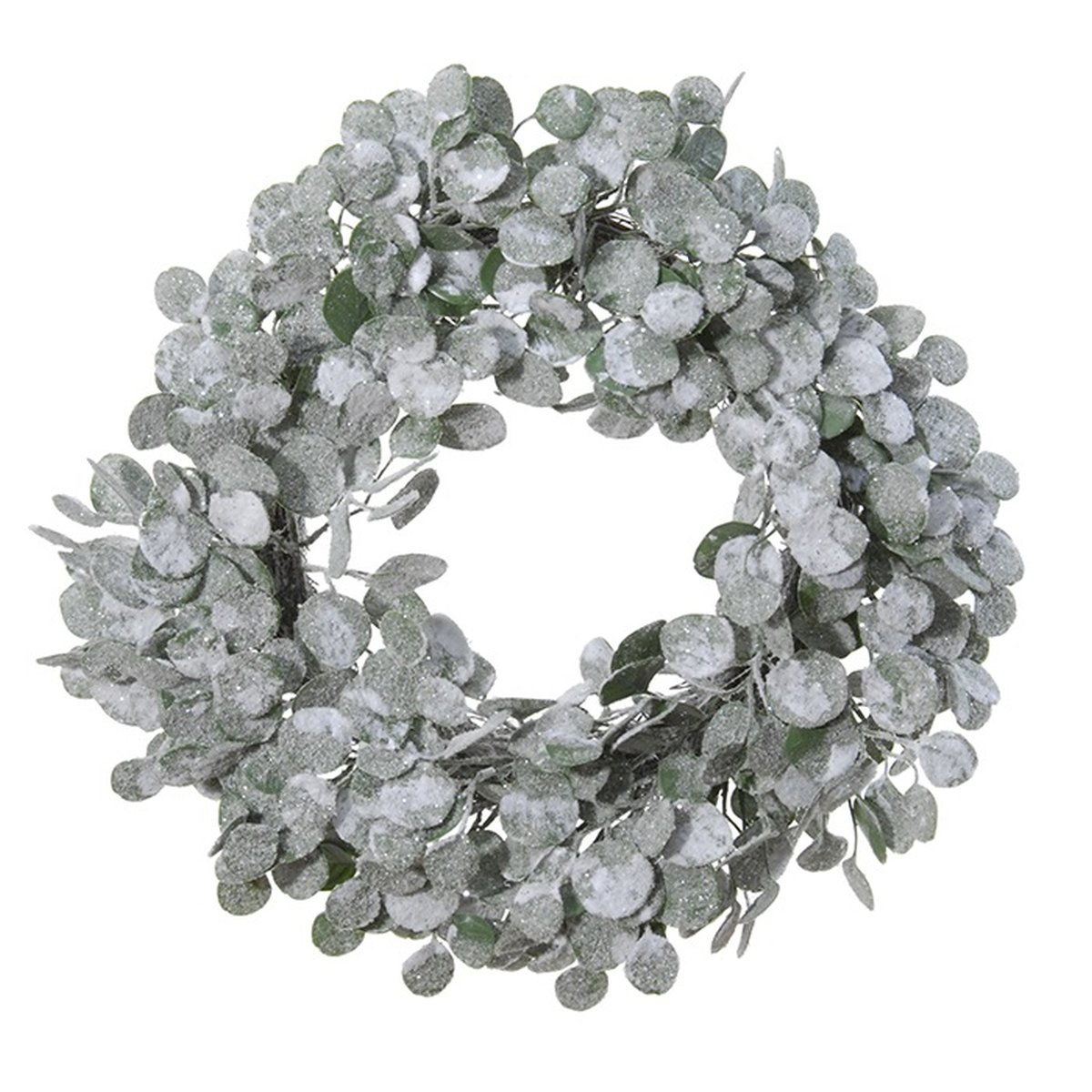 Umělý věnec eukalyptus PHONG, zmrzlý, bílo-zelený, Ø45cm