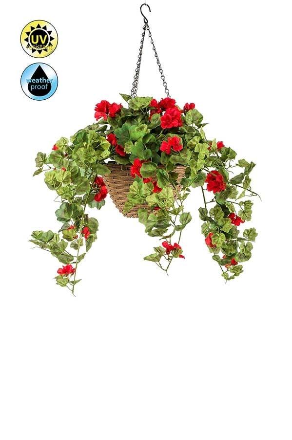 Umělý závěsný koš pelargonie CUVAST v koši, křížový, červený, 70cm