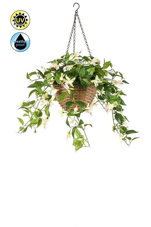 Umělý závěsný košík fuchsie JONKFUN v košíku, křížová dvířka, krémově růžová, 70cm