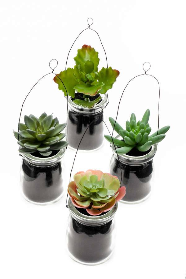 Umělý závěsný košík se sukulenty LASEO v dekorativním skle, 4 kusy, barevný, 10cm