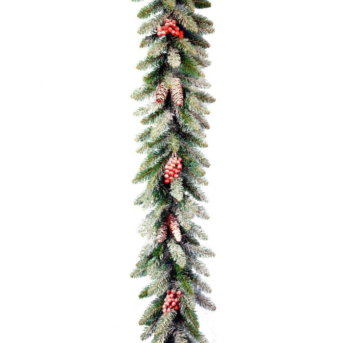 Umělý zimní věnec RAVENNA se šiškami, zasněžený, 275cm, Ø25cm