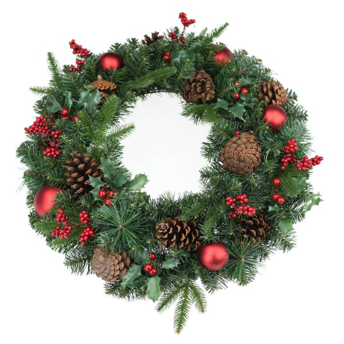 Umělý zimní věnec VISALIA, zelený, ovoce, Ø60cm