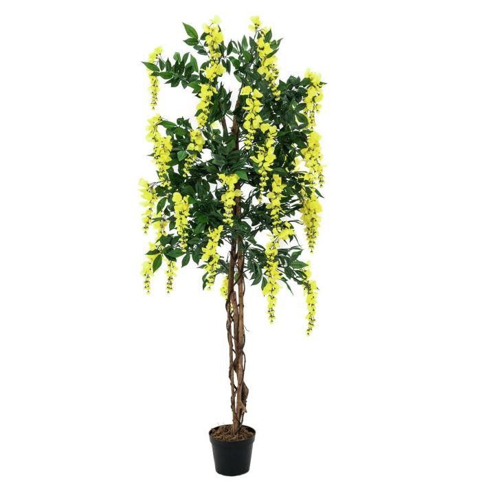 Umělý zlatý déšť LESLIE, skutečné kmeny, s květy, žlutá, 150cm