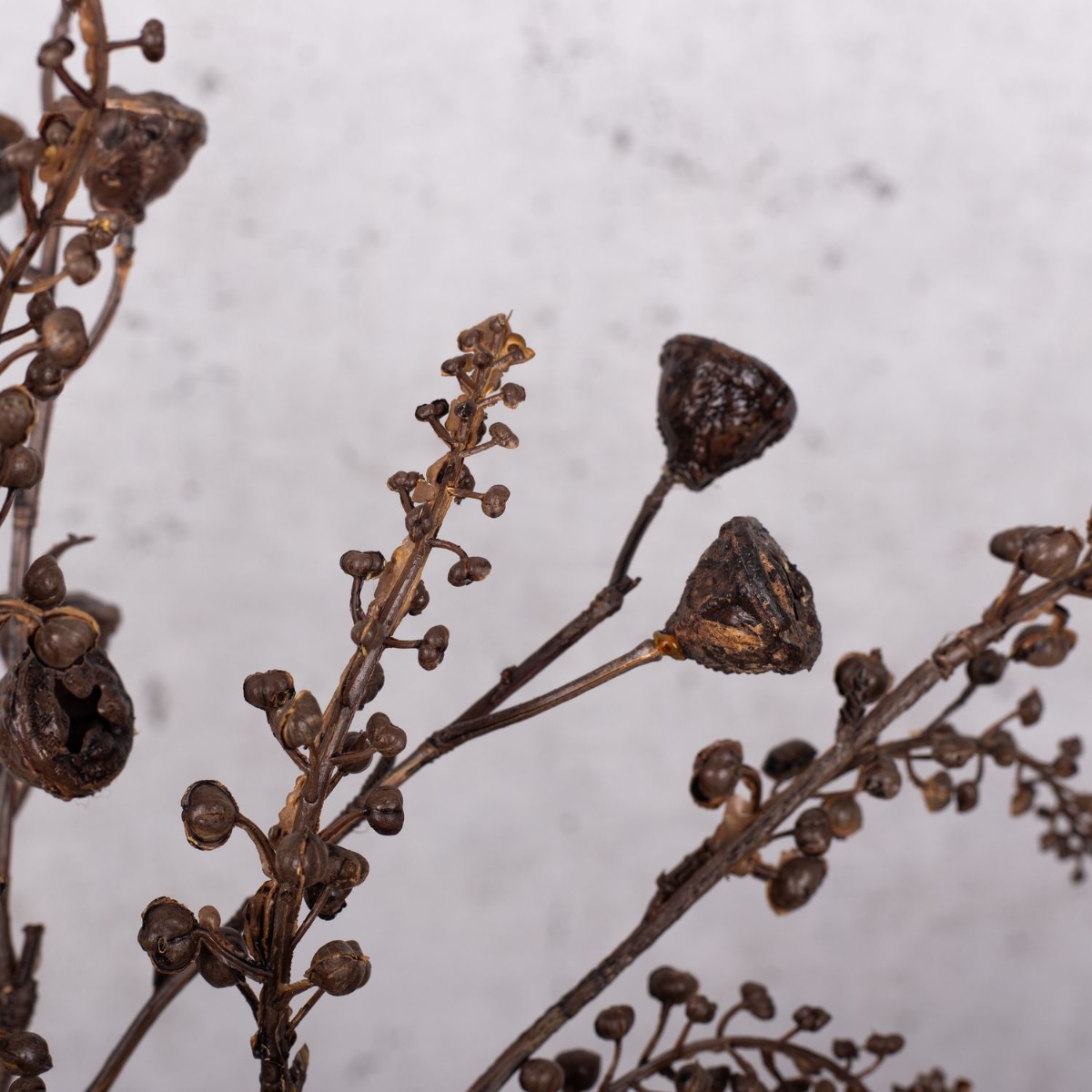 Designový tip: Zkraťte hnědé větve na velikost vázy a naaranžujte je do vnější části vázy. Sametovou jiřinu rovněž zkraťte a umístěte ji do středu vázy. Tento vzhled je opravdu snadné znovu vytvořit a vyžaduje pouze štípačky na drát nebo kleště.
