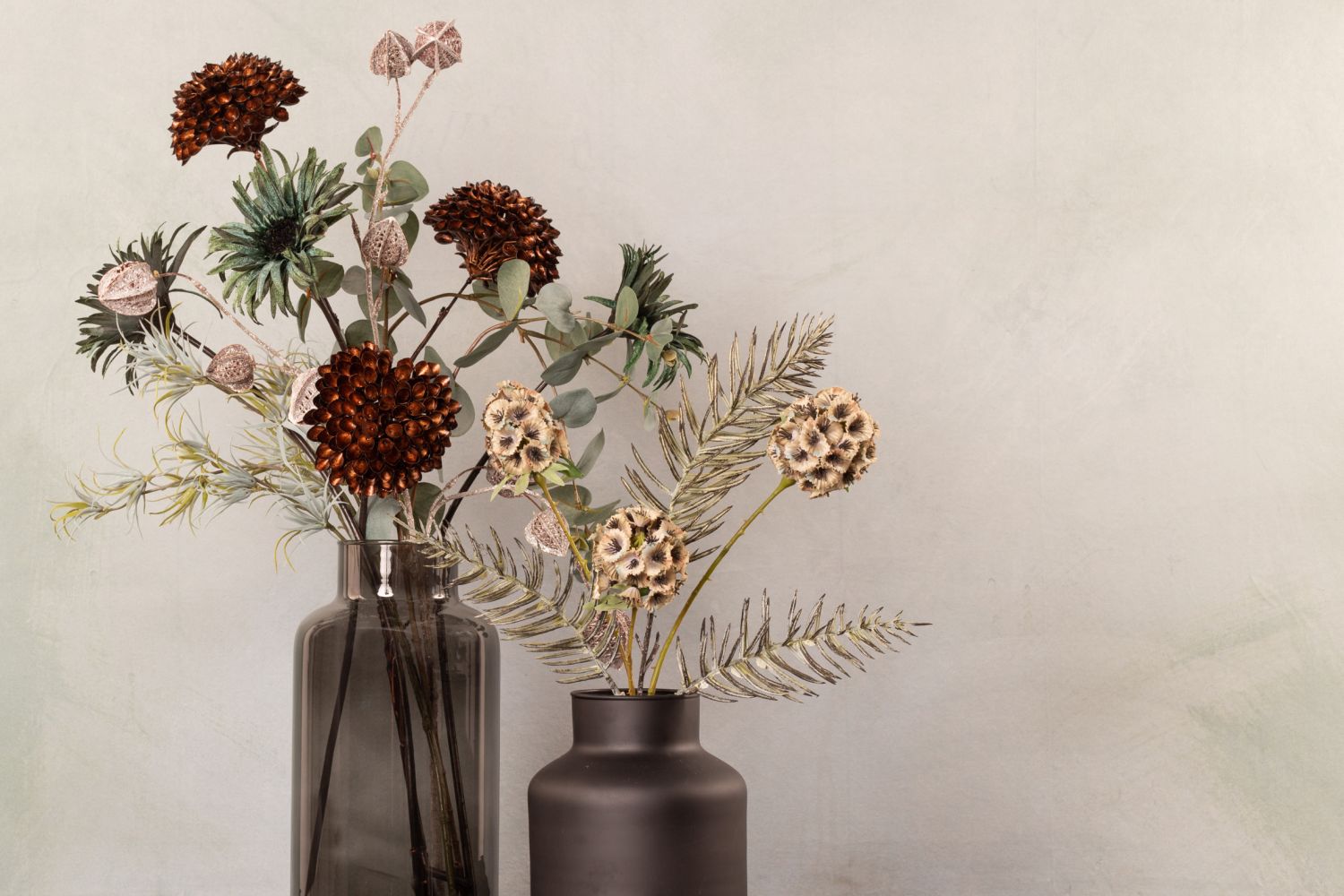 Designový tip: Větvičky nastříhejte podle velikosti vázy a dbejte na to, aby byly různě dlouhé. Květy ohněte tak, aby byly pěkně rozdělené.