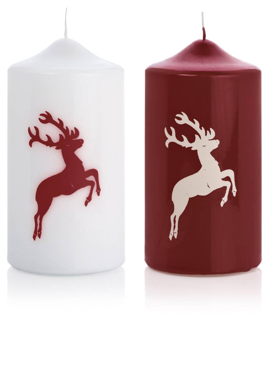 Vánoční svíčka DALDI, motiv jelena, 2 kusy, bordó-bílá, 15cm, Ø8cm, 69h - Made in Germany