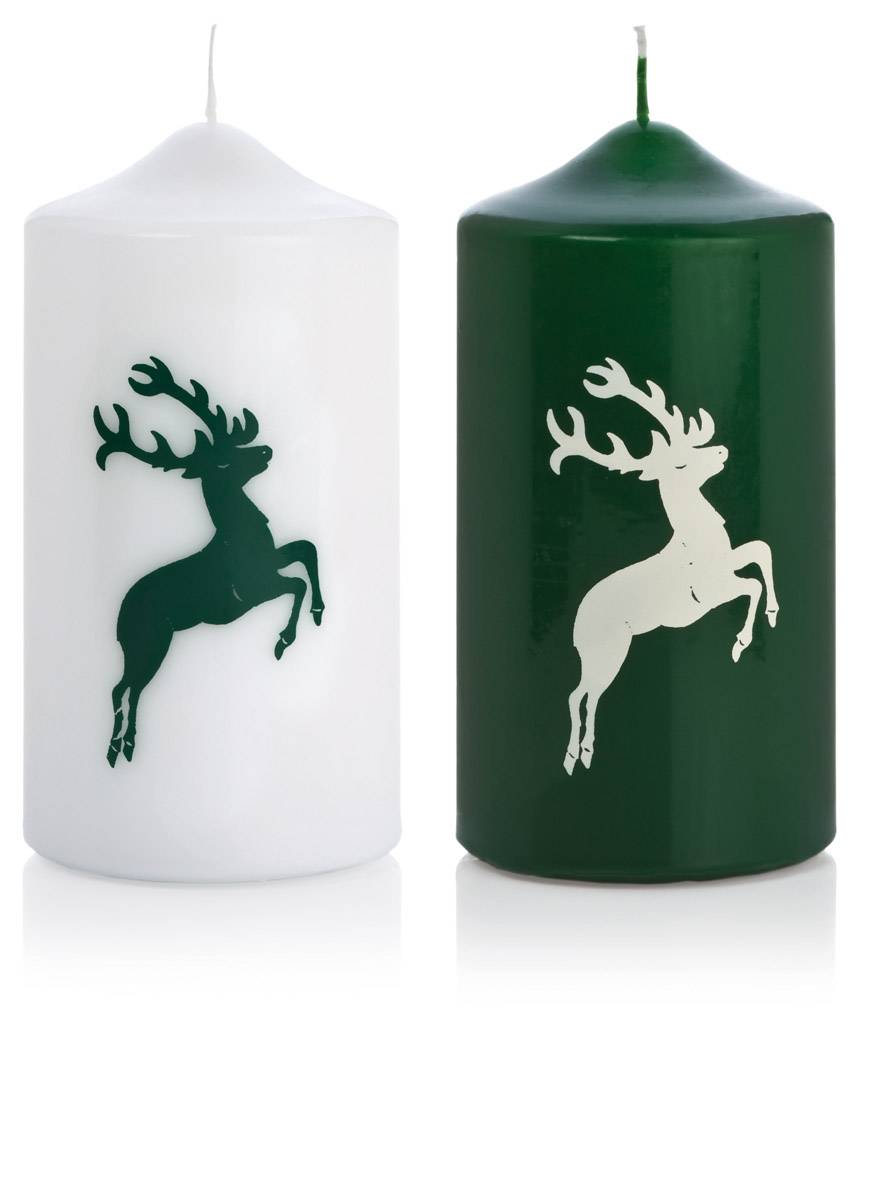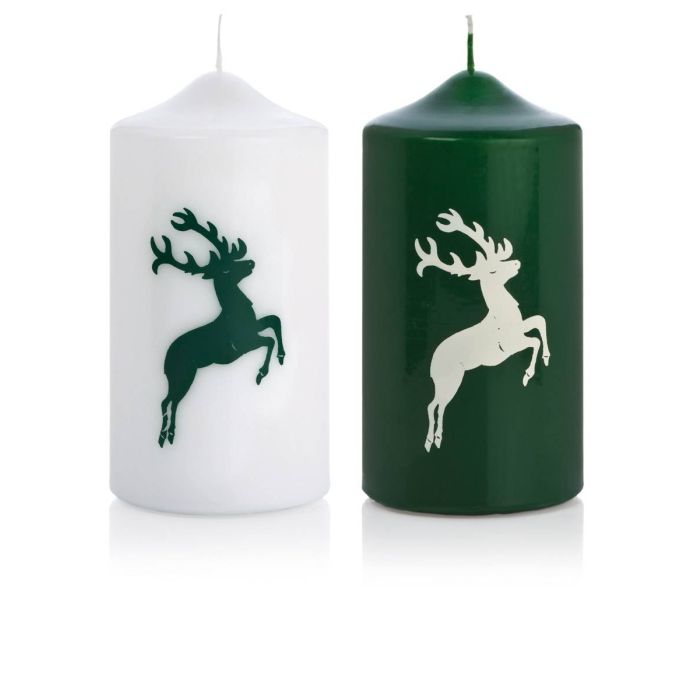 Vánoční svíčka DALDI, motiv jelena, 2 kusy, tmavě zeleno-bílá, 15cm, Ø8cm, 69h - Vyrobeno v Německu