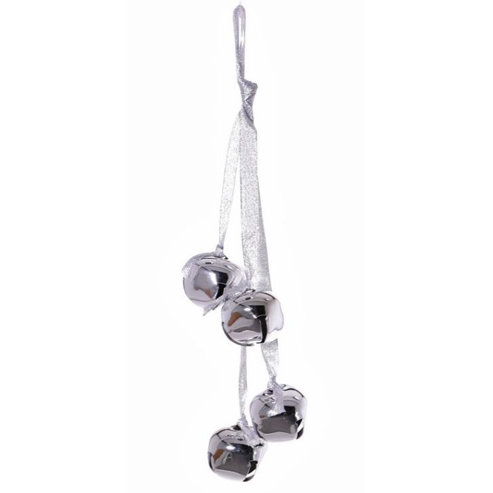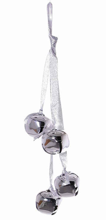 Vánoční zvonky DARA, 4 kusy, závěsné, stříbrné, 35cm, Ø4,5cm