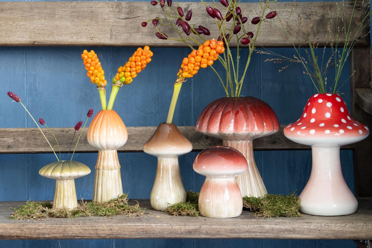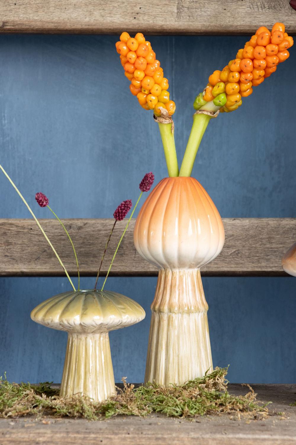 Váza na houby RADOMILA, keramická, drážky, oranžovo-béžová, 18cm, Ø7,4cm
