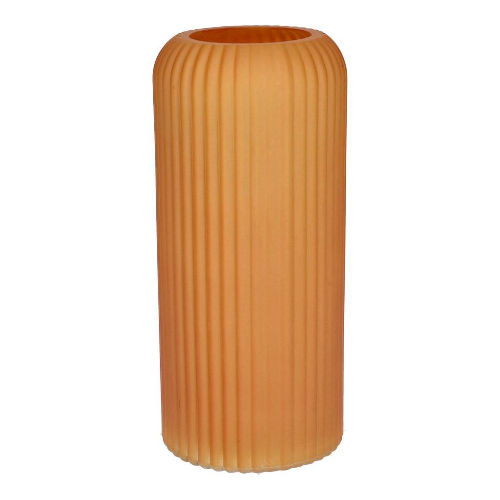 Váza na květiny ALBURGIS s drážkami, sklo, matně oranžová, 20cm, Ø8,7cm