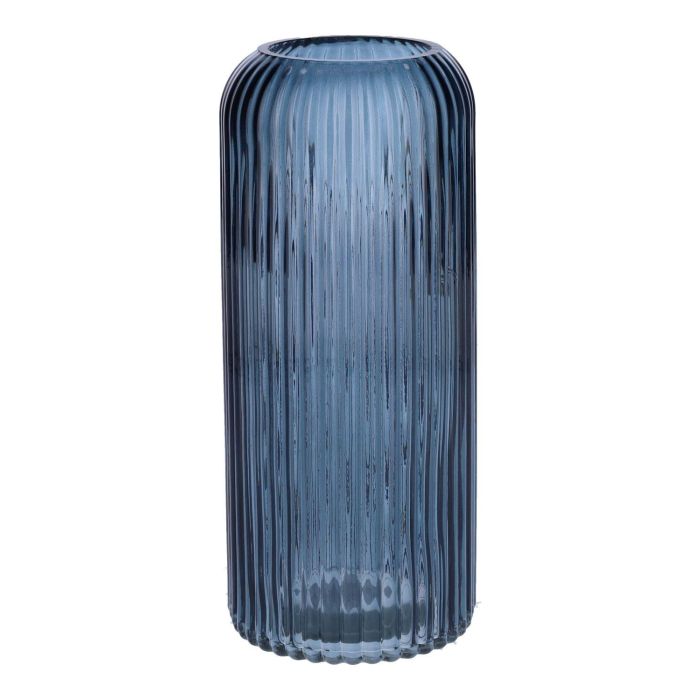 Váza na květiny ALBURGIS s drážkami, sklo, modro-čiré, 20cm, Ø8,7cm