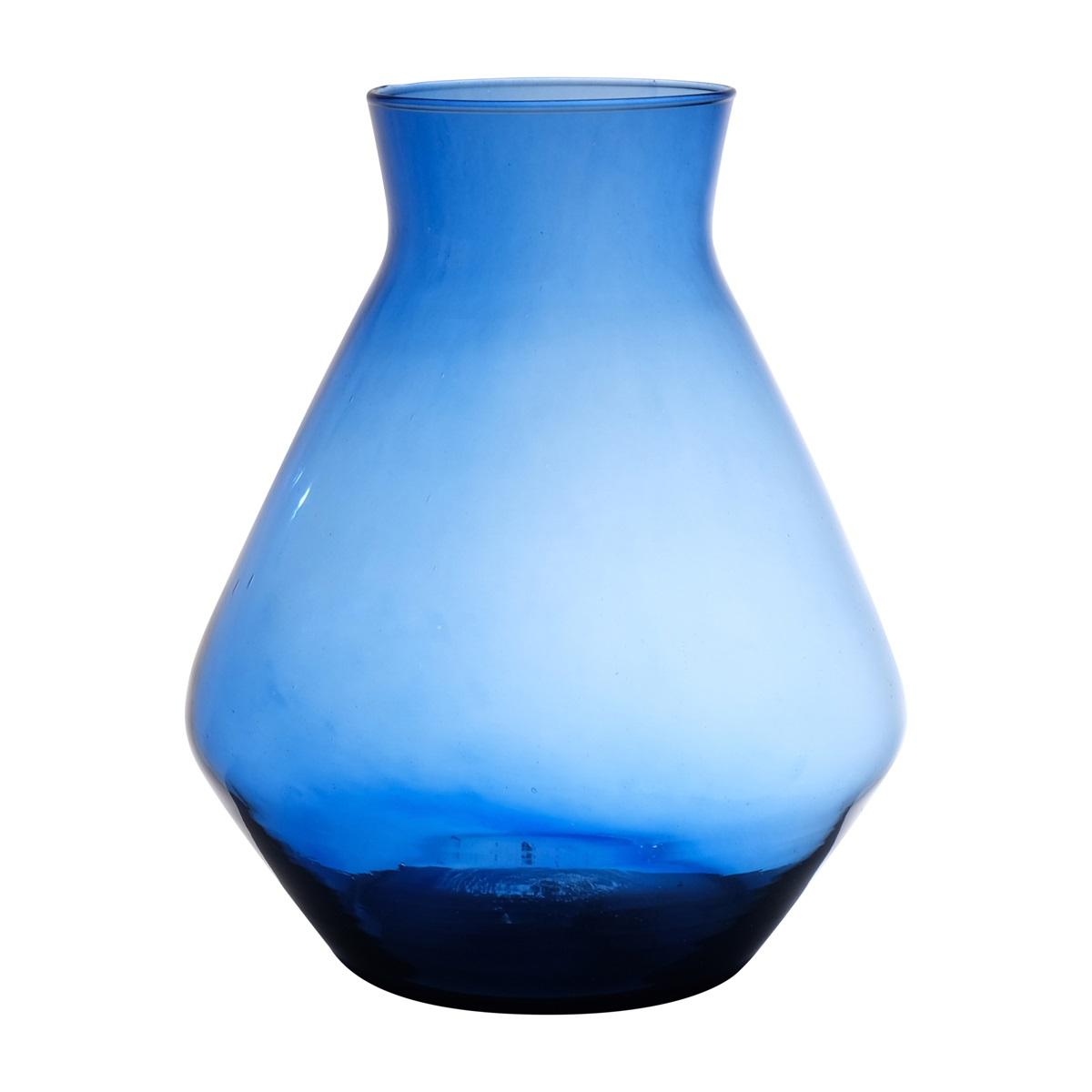 Váza na květiny RAMUNDA ze skla, recyklovaná, modročirá, 25cm, Ø19cm