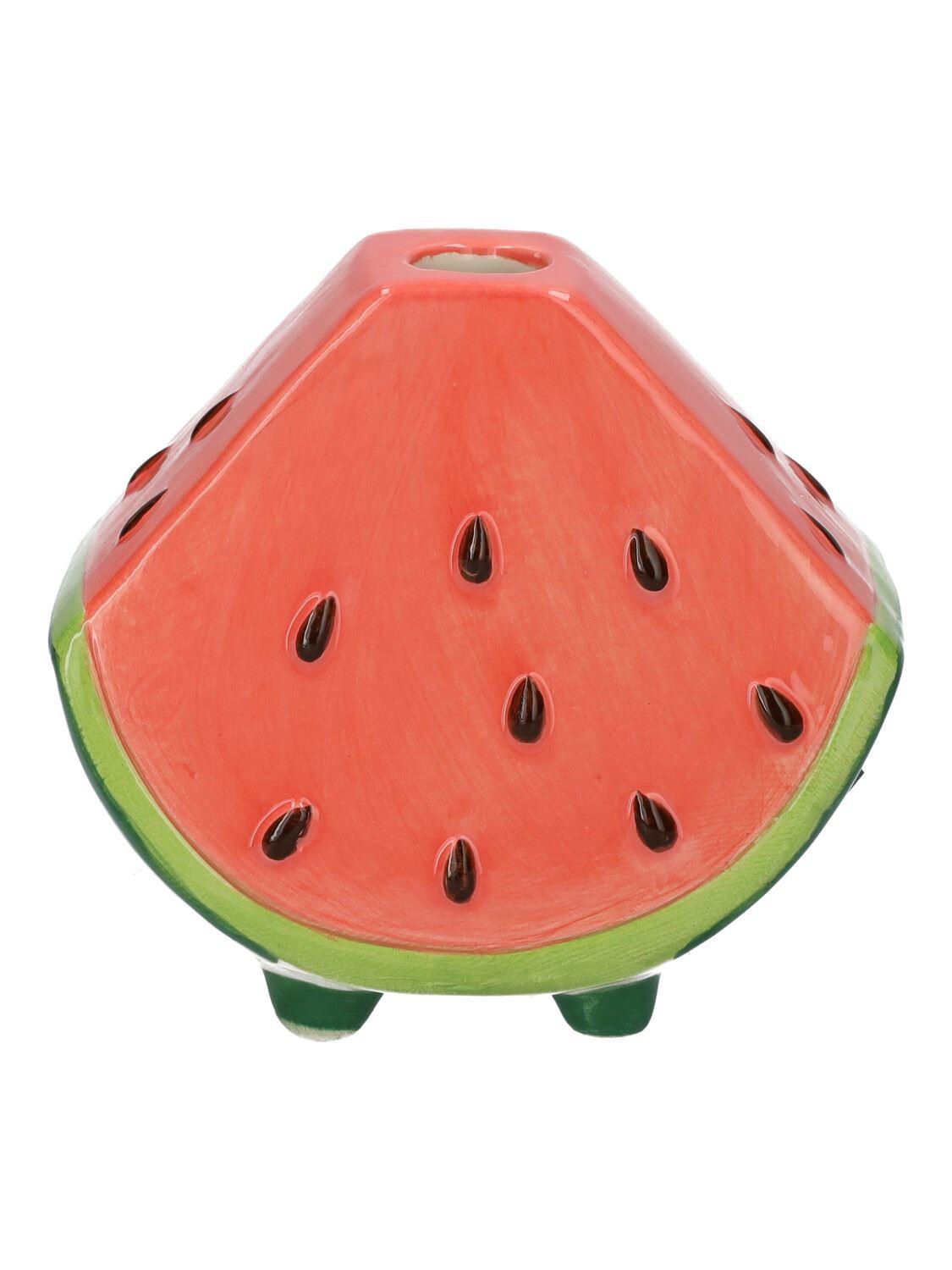 Váza na květiny se stonkem melounu TILLAS z keramiky, s nožkami, červeno-zeleno-hnědá, 10x6x8,7cm