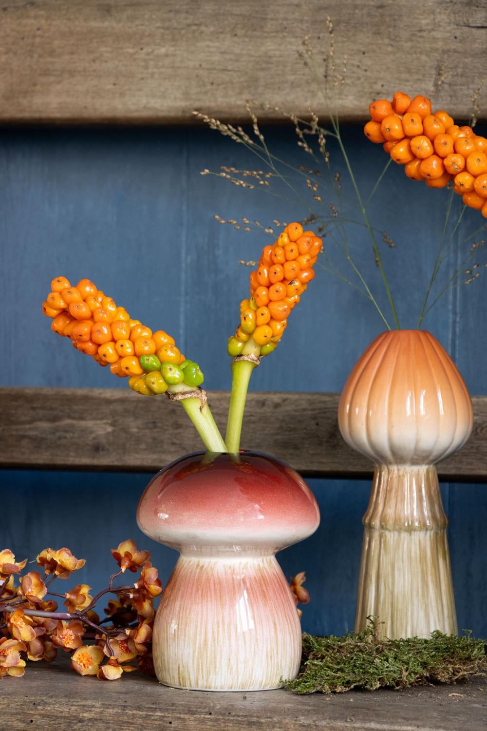 Váza na květiny ve tvaru houby REFELINDE, keramická, červenobéžová, 12cm, Ø9,5cm
