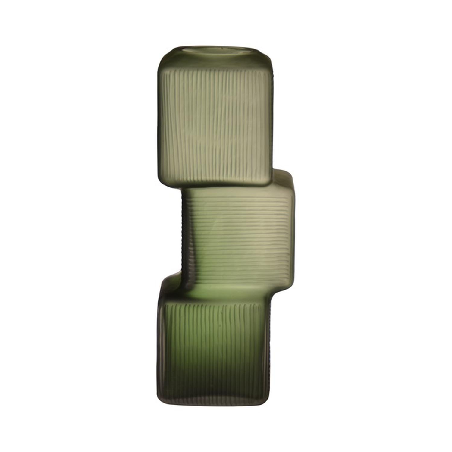 Vázička na jednu květinu RAELYN, sklo, tetrisový vzor, zelená, 37cm, Ø14,5cm