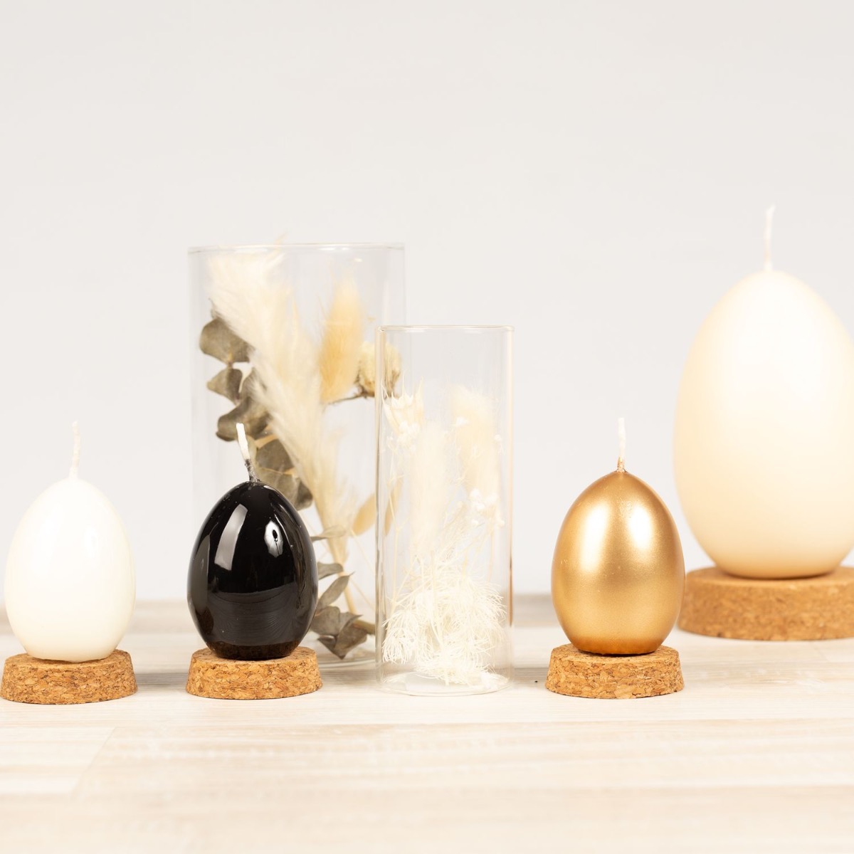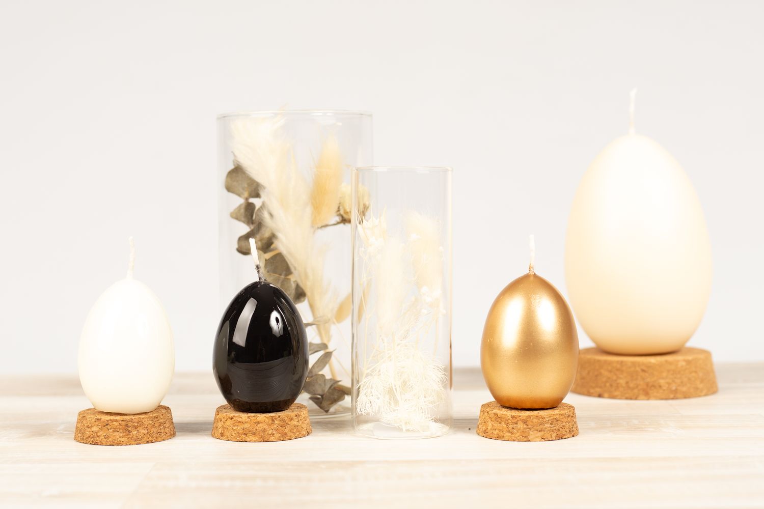 Zlatá a černá! S těmito barvami si člověk nejdříve nevybaví Velikonoce a jaro. Ale když se podíváte na tento elegantní vzhled, opravdu se vám chce jít na každoroční lov vajec. Různě velké svíčky na velikonoční vajíčka v ušlechtilém designu se zlatým lakem nebo neuvěřitelně lesklým černým lakem. K nim jsme vybrali dva výrobky z naší nabídky sušených květin. Trubicové nádoby naplněné sušenými květinami jsou v současné době naprosto moderní a podtrhují vznešený vzhled svíček na vajíčka. Přejeme vám krásné velikonoční svátky! Nakupujte vzhled!