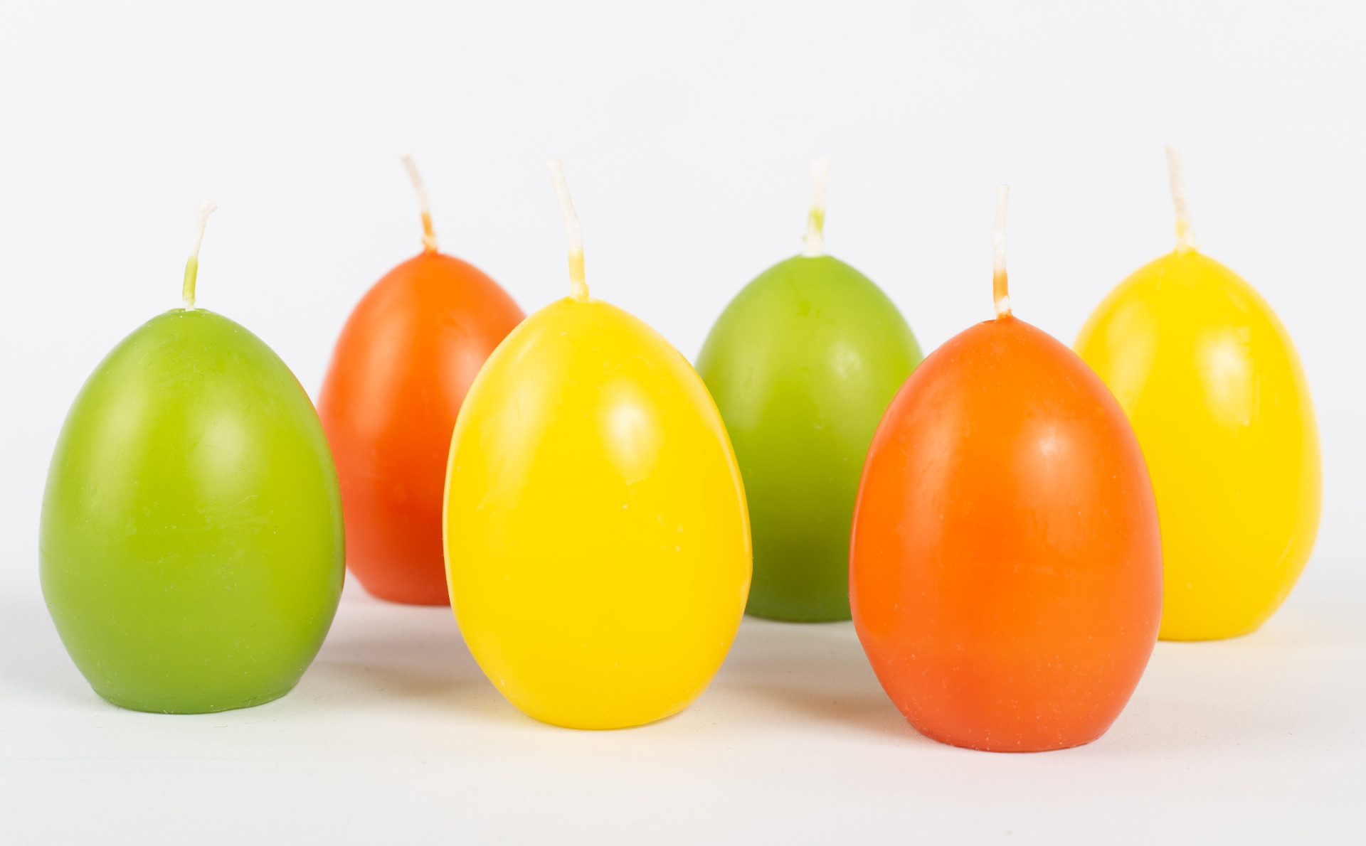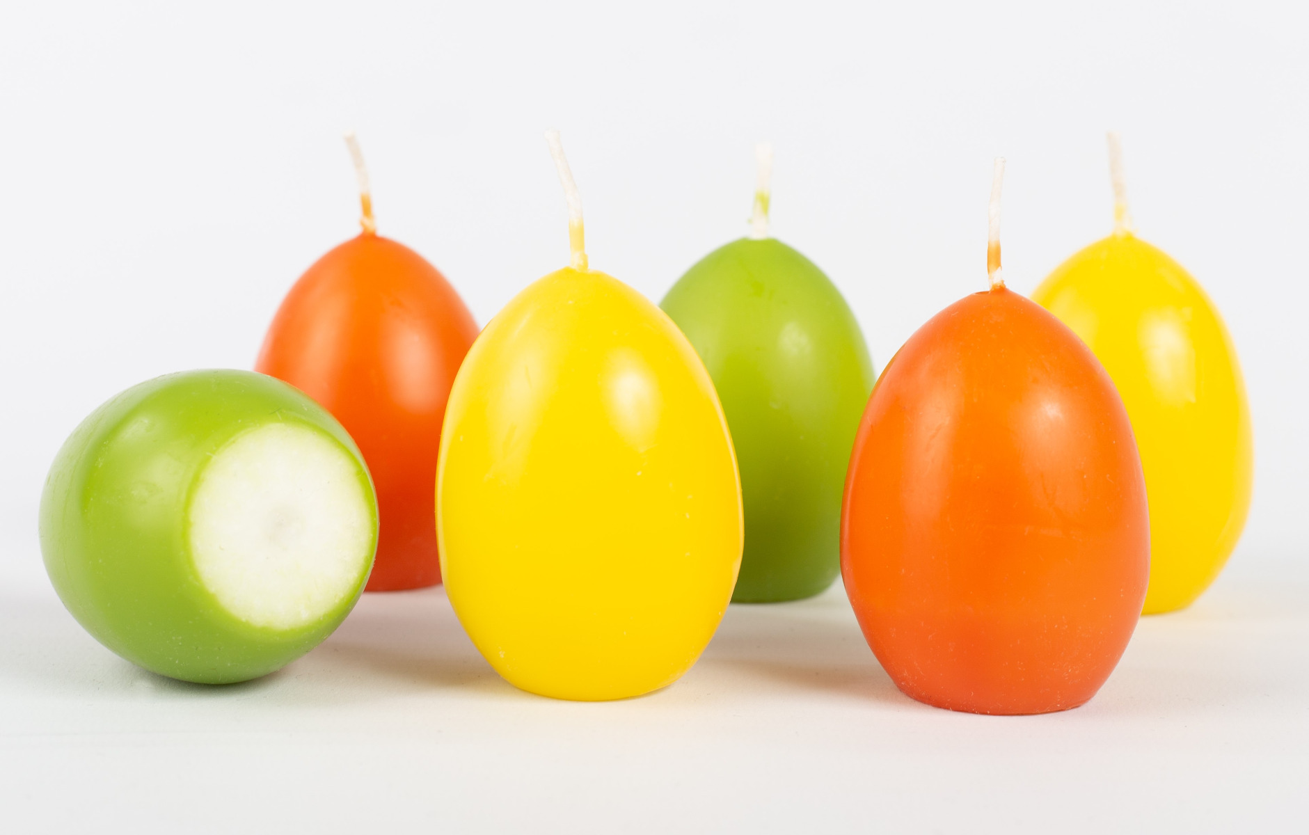 Velikonoční svíčky na vajíčka LEONITA, 6 kusů, žluto-oranžovo-zelené, 6cm, 4,5cm, 7h - vyrobeno v Německu