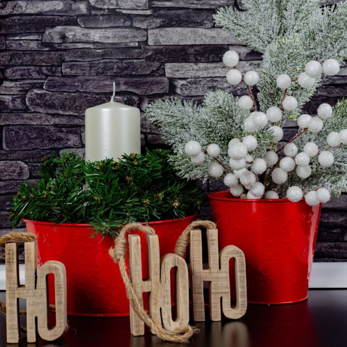 Slavné Vánoce! Červená mísa a červená keramická váza se dokonale hodí do vánočního období. Umístěte věnec na mísu a trochu ho olemujte, doprostřed umístěte svícen se svíčkou a část dekorace je hotová. Vázu můžete naplnit granulemi podle vlastního výběru, aby dekorativní pór a jedlová větvička bezpečně držely na místě. Samozřejmě můžete přidat také dekorativní figurky a drobné ozdoby. Nakupte si tento vzhled!