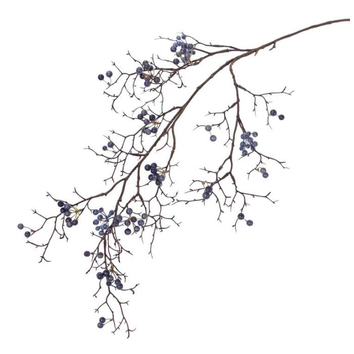 Větev z umělých sněhových bobulí GESA s plody, modrá, 100cm