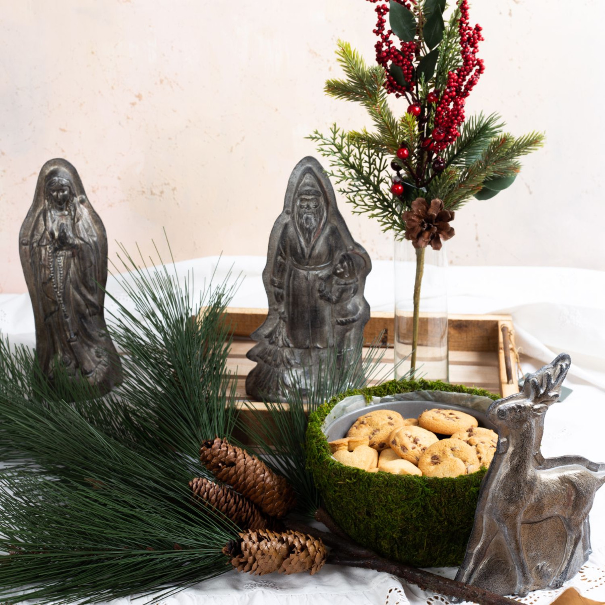 Dekorace pro předvánoční období! Ozdobte si stůl v obývacím pokoji nebo příborník touto sadou, která nic neponechá náhodě. Větvička bobulí a větvička jedle najdou své místo v úzké váze. Skleněný květináč lze použít také jako nádobu na sušenky nebo jej můžete použít jako svícen, díky vrstvě ozdobných granulí můžete nastavit výšku svíčky. Vázu nebo květináč umístěte na podnos, který můžete v případě potřeby vyložit vánočním ubrouskem. Před něj umístěte velké větve jako dekoraci a máte krásnou ozdobu pro adventní období. Nakupte si tento vzhled!