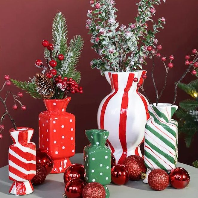 Sladké akcenty v zimním kouzlu! Mezi decentně třpytivými vánočními ozdobami vzniká jemná hra lesku, jako by místnost zahalil jemný závoj. Ozdoby odrážejí světlo a vytvářejí jasné, klidné akcenty. Vedle nich stojí vázy v podobě barevných bonbónů, lesklé jako čerstvě vybalené sladkosti z obrovské cukrové sklenice. Výrazné, ale harmonické barevné tóny vnášejí do zimní scenérie pocit tepla a lehkosti. Z nich vyčnívají zasněžené větve, jejichž světlé špičky vytvářejí příjemný kontrast. Mezi nimi září červené bobule, jasné a přesné, jako malé barevné tečky, které drží aranžmá pohromadě. Vzniká tak moderní, barevný a přesto zimně jasný vzhled. Souhra jemných mrazivých momentů a živých barev. Dodává místnosti tichou slavnostnost, která působí přívětivě, aniž by se tlačí do popředí. Kupte si tento vzhled!